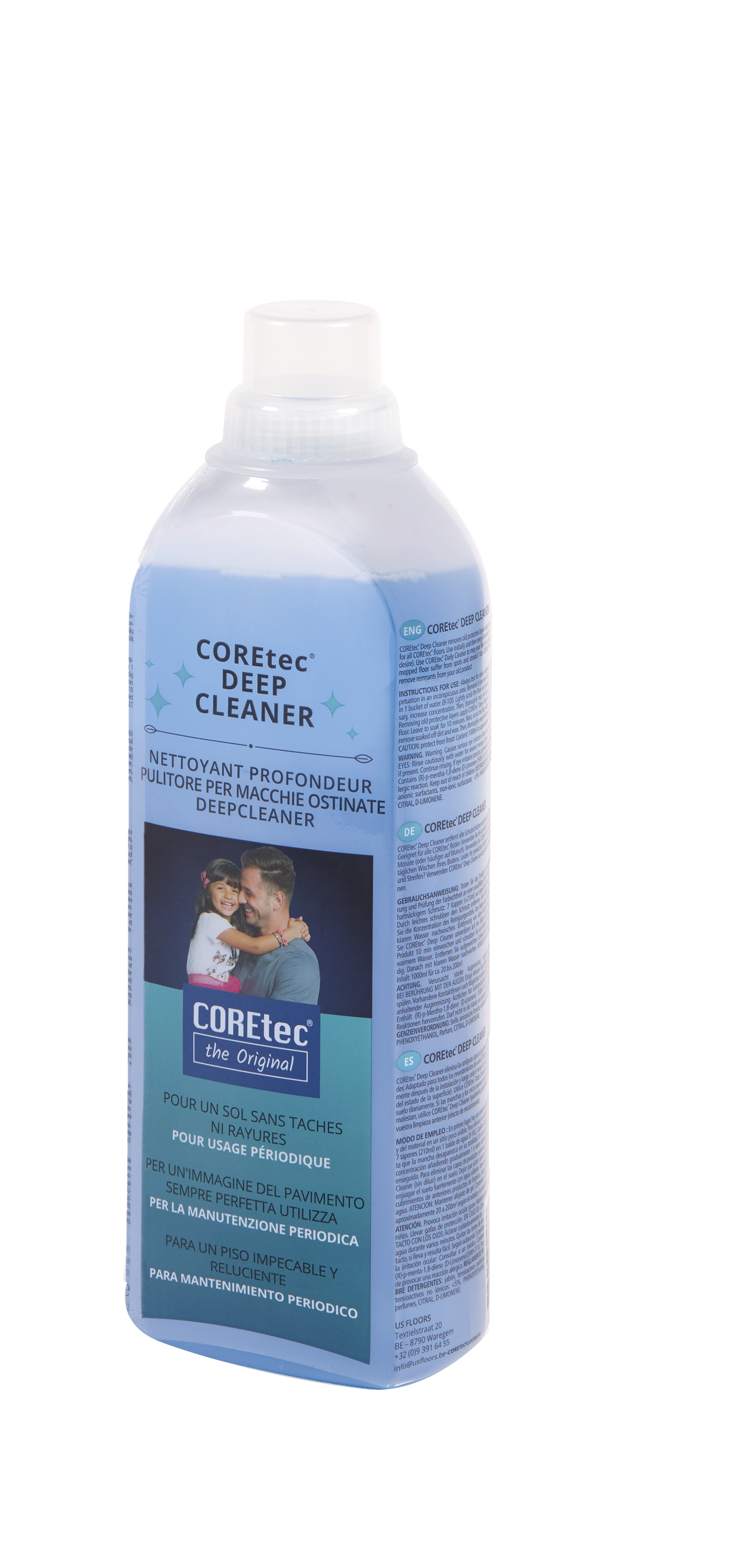 De Coretec Deep Cleaner is een veel krachtigere reiniger dan de Coretec Daily Cleaner. Dit schoonmaakmiddel is niet geschikt voor dagelijks gebruik maar is bedoeld om periodiek de zwaardere vervuilingen te verwijderen. Bij Coretec pvcvloeren met een embossing kan na verloop van tijd vuil ophopen in de groeven. Dit vuil is alleen met Coretec DEEP CLEANER te verwijderen. Verder kun je deze Coretec cleaner gebruiken als probleemoplosser voor onder andere vlekken en strepen op de vloer of als je een plakkerige vloer hebt. 1x dweilen met Coretec DEEP CLEANER en de klacht is in 99,9% van de gevallen verdwenen.